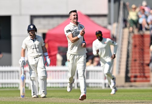 Derbyshire's openers have been are dealing purely in boundaries so far but David Lloyd top edges a pull of James Anderson for four and the bowler then produces a beauty later in the over to knock over the off stump of Caleb Jewell for 16.
