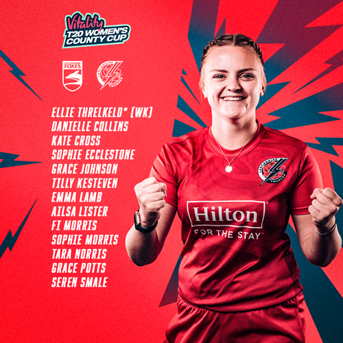 Ellie Threlkeld (c&wk), Danielle Collins, Kate Cross, Sophie Ecclestone, Grace Johnson, Tilly Kesteven, Emma Lamb, Ailsa Lister, Fi Morris, Sophie Morris, Tara Norris, Grace Potts, Seren Smale