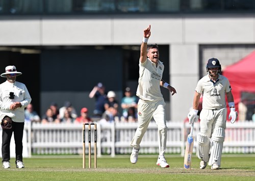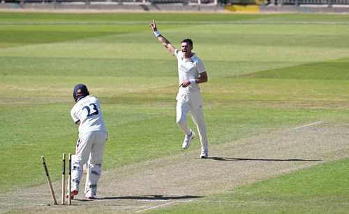 Anderson struck with his 18th delivery, knocking back the off stump of Caleb Jewell for 16 and having peppered David Lloyd with a number of short-pitched balls found reward eight balls later when the batter gloved a catch to wicketkeeper Matty Hurst for 27.