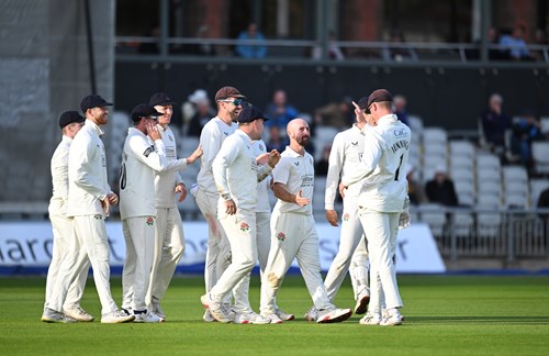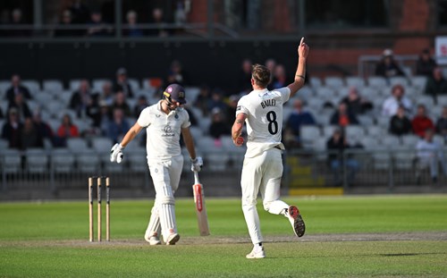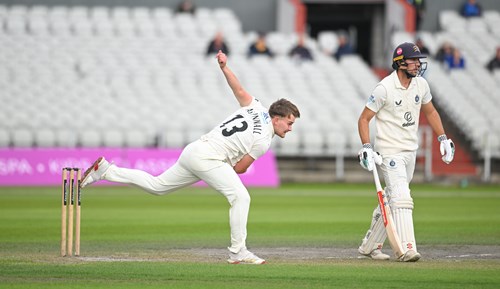 The bowler made quick amends by having de Caires caught behind attempting to drive after making 52, before Josh Bohannon – bowling medium pace – struck with his first delivery to bowl Joe Cracknell for 6 with a beauty.