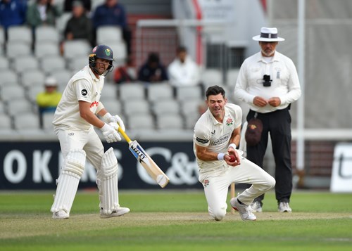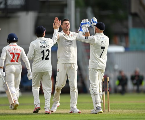 Anderson, on his 43rd birthday, took two early wickets in one over when Glamorgan began their second innings but a steadying partnership of 71 between Sam Northeast and Kiran Carlson has the visitors well-placed to push home their strong advantage tomorrow.