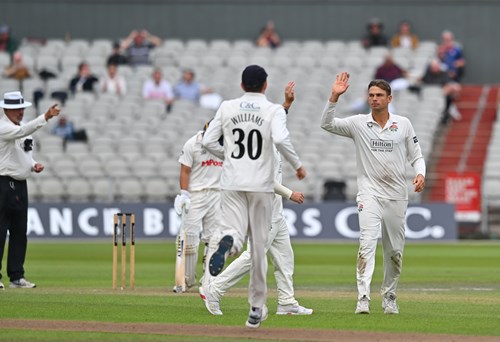 Mason Crane and James Harris added 25 runs before the latter was bowled by Tom Hartley for 11 leaving Crane (9 not out) and Ned Leonard (4 not out) to return to the crease tomorrow morning.
