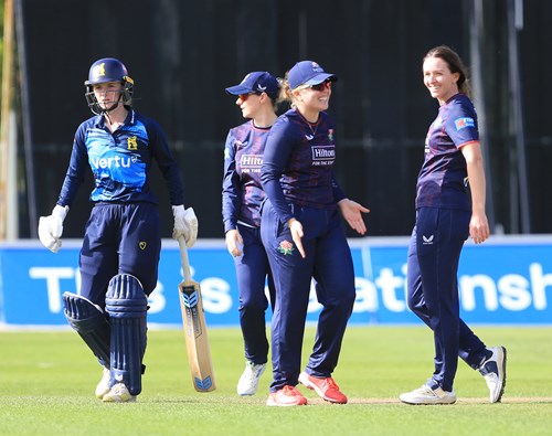 Warwickshire had posted 283-7 from their 50 overs but the Lancashire innings was halted halfway through the sixth over of their reply with the score 20-1 due to increasingly heavy rain. Set a revised target of 172 to win in 22 overs, a thrilling partnership of 106 off 73 balls between Gaby Lewis and Seren Smale set Lancashire on their way with victory achieved with five balls to spare.