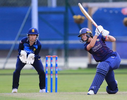 Kalis was quickly into her stride, hitting her fourth ball faced for six off Morris, to up the tempo alongside Freeborn as the pair struck the ball positively in posting their fifty partnership off 65 balls.