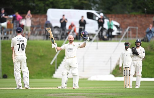 Turner followed to his century on Lancashire debut, the sixth of his career, soon afterwards off just 117 balls with 4 sixes and 6 fours – and he wasn’t finished.