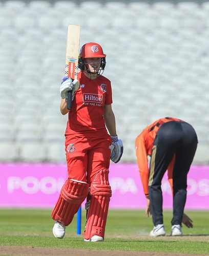 Lamb, the leading run scorer in the competition, boosted her chances of gaining international selection with an excellent 74 in front of the watching England Head Coach Charlotte Edwards but three wickets by The Blaze skipper Kirstie Gordon threatened to swing the game the way of the visitors with Lancashire 155 for six after 32 overs.