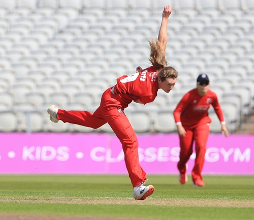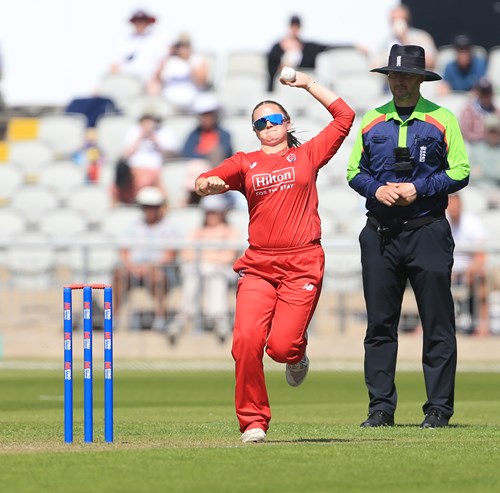 Early pressure applied by Cross and Mahika Gaur after Lancashire had won the toss brought reward with the wicket of Tammy Beaumont for 11 well caught at mid-on by Fi Morris off Cross.