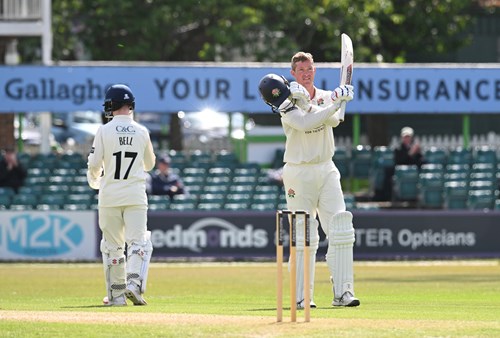 After finding support from Matty Hurst, who was caught behind off a fine delivery by Scriven, in adding 70 for the fourth wicket, Jennings reached the milestone as a meaty pull Van Beek brought him a 10th boundary.