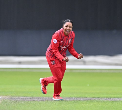 But Lamb’s exemplary 66 not out, coming in partnerships of 65 with Eve Jones and 92 with Seren Smale, saw Lancashire home by eight wickets.