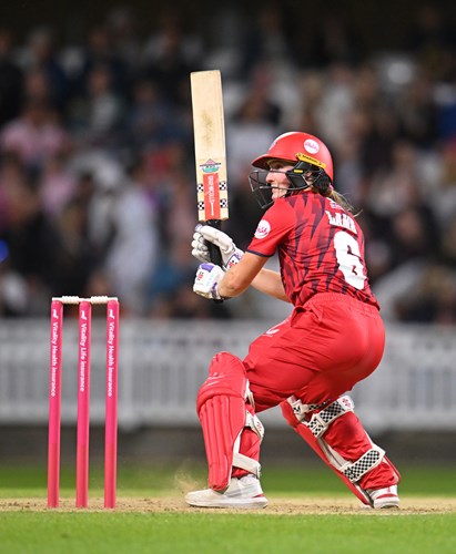Attempting to break the stranglehold, the hard-hitting Wellington plundered 25 from 14 balls, including five boundaries, to put the Lancashire bowling under pressure for the first time. Encouraged by the success of her partner, Griffiths opened her shoulders in raising 27 from 18 balls as the seventh wicket alliance yielded 45 crucial runs in 4.3 overs at the death.