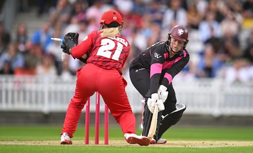 Put into bat and missing injured England stars Heather Knight and Dani Gibson, Somerset made an inauspicious start, Amelie Munday missing a straight one from Cross and departing bowled without scoring, and Bex Odgers being stumped by Ellie Threlkeld off the bowling of Sophie Morris for 18 as the home side slipped to 26-2 in the seventh.