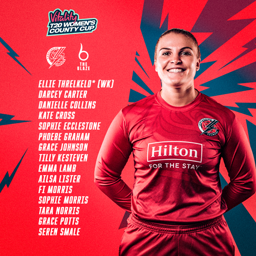 Ellie Threlkeld (c&wk), Darcey Carter, Danielle Collins, Kate Cross, Sophie Ecclestone, Phoebe Graham Grace Johnson, Tilly Kesteven, Emma Lamb, Ailsa Lister, Fi Morris, Sophie Morris, Tara Norris, Grace Potts, Seren Smale